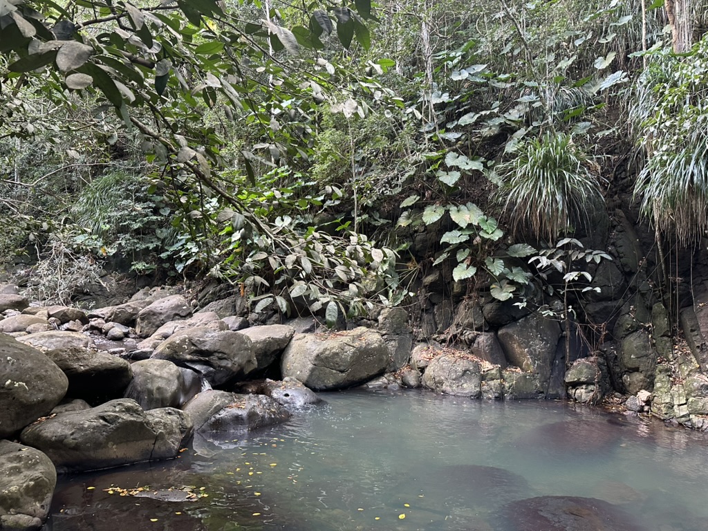 The Doyle Guide recommends the hike up the Deshaies River. I decide to try it. The scenery is stunning but the trail (such as it is) is very wet. That rain hanging in the valleys? It means business. I return two hours later with mud up to my thighs. I visit Le Pelican to buy trinkets and to rent a car. I’m proud of myself that I manage to do this in French, although I’m quite relieved when we return to pick it up and there’s an actual car there. We walk up to the Botanic Gardens to look around. We wonder: Is Jerk the parrot named for the spice? Or for his behavior? Swim early morning laps around the boat. Reward myself with a pain au chocolat.